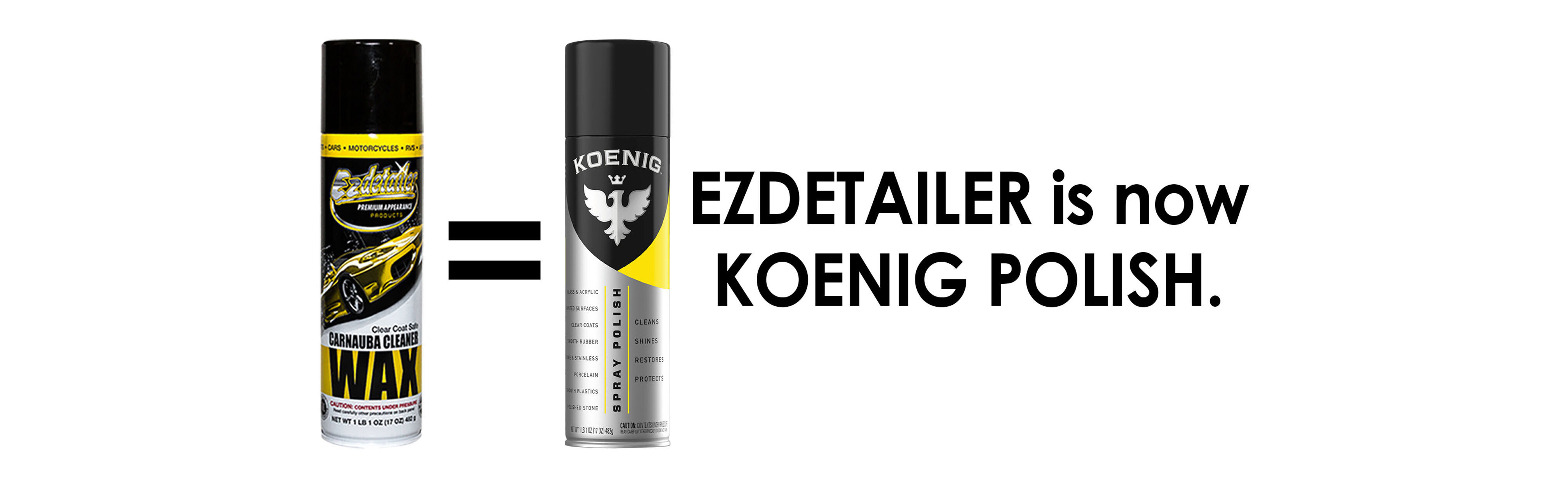 In 2014, thinking the name EZdetailer was too vehicle-specific, we rebranded as Koenig Polish, a fresh new unmistakable visual identity for our same beloved product. Aside from the name, nothing else has changed and our original all-in-one formula remains the same.